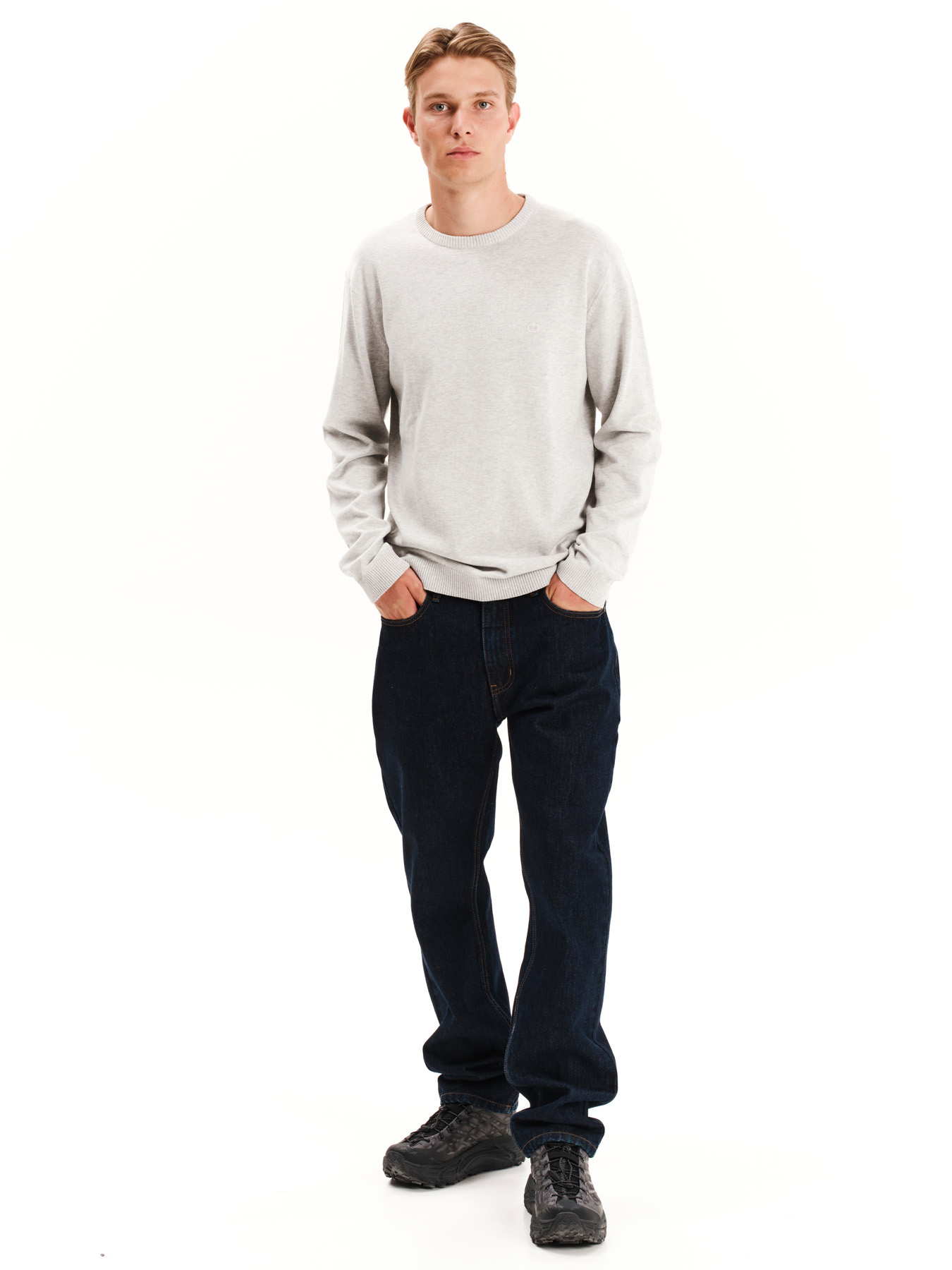 Πλεκτό βαμβακερό με ίσια πλέξη , λαιμόκοψη και rib πλέξη σε στον λαιμό , στο μανίκι και στο τελείωμα. Ένα  βασικό κομμάτι που συνδυάζεται με όλα -jeans ,cargos ,chinos-. Διαλέξτε το χρώμα που σας ταιριάζει .