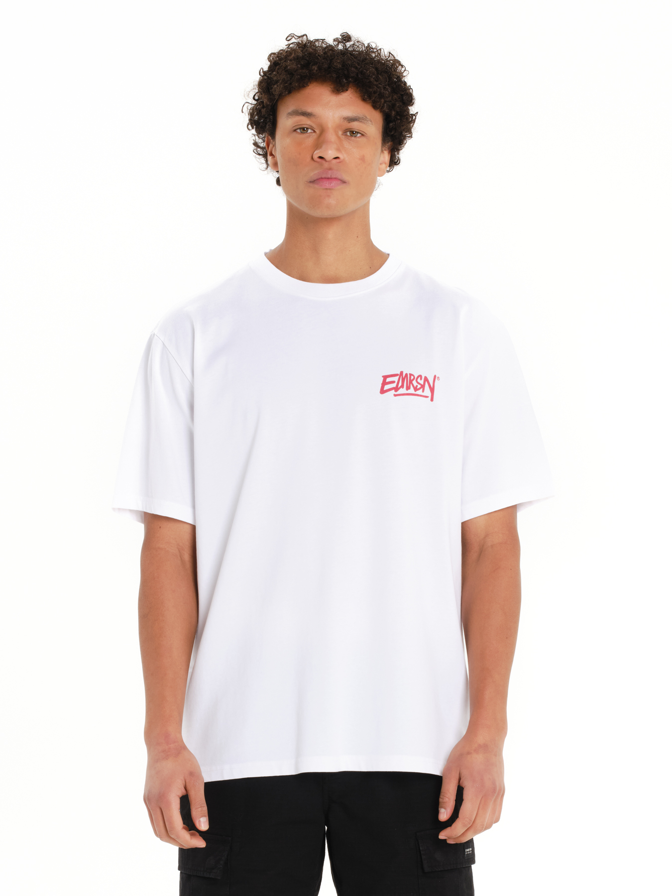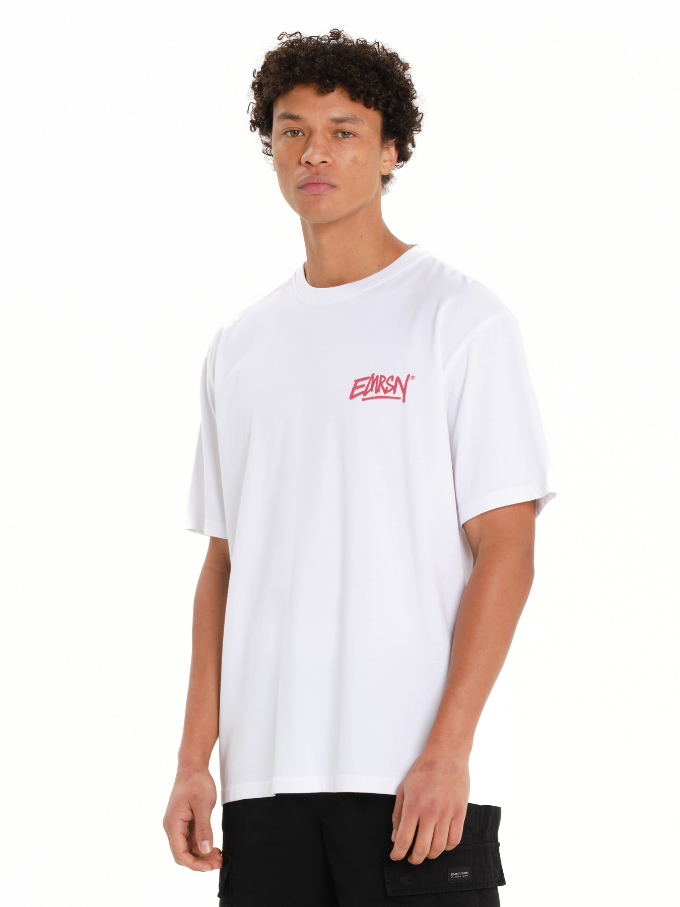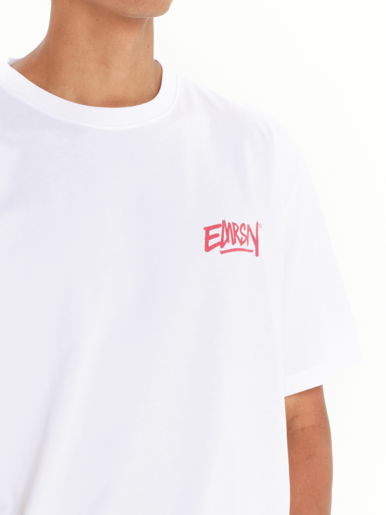 Ανδρικό EMERSON κοντομάνικο t-shirt από 100% οργανικό βαμβάκι με τύπωμα εμπρός στην καρδιά και πίσω στην πλάτη. Διαθέτει στρογγυλή rib λαιμόκοψη και άνετη εφαρμογή. Ταιριάζει εξαιρετικά με oversized jeans και cargo.