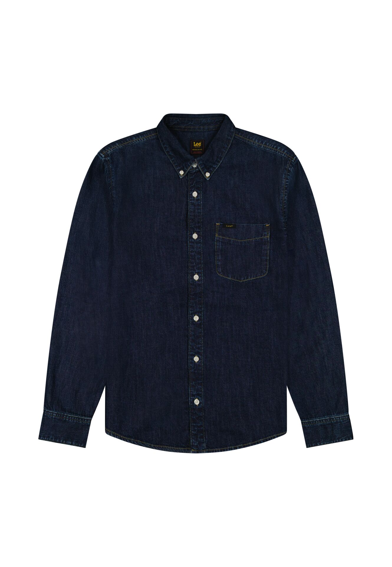 Πουκάμισο jean σε κανονική γραμμή με μια τσέπη στο στήθος. Ένα αυθεντικό denim shirt σε σκούρη μπλε απόχρωση ιδανικό για chinos παντελόνι και jeans. Μπορείτε να το φορέσετε ως overshirt πάνω από t-shirt.