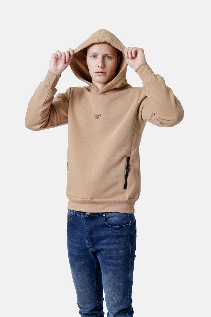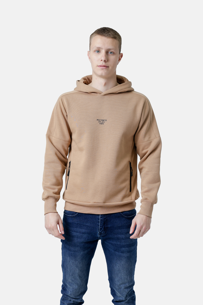 Φούτερ με κουκούλα και τύπωμα στο κέντρο εμπρός. Έχει δύο τσέπες στο πλάι που κλείνουν με φερμουάρ. Ένα street style hooded sweat ιδανικό για oversized παντελόνια ή jeans .