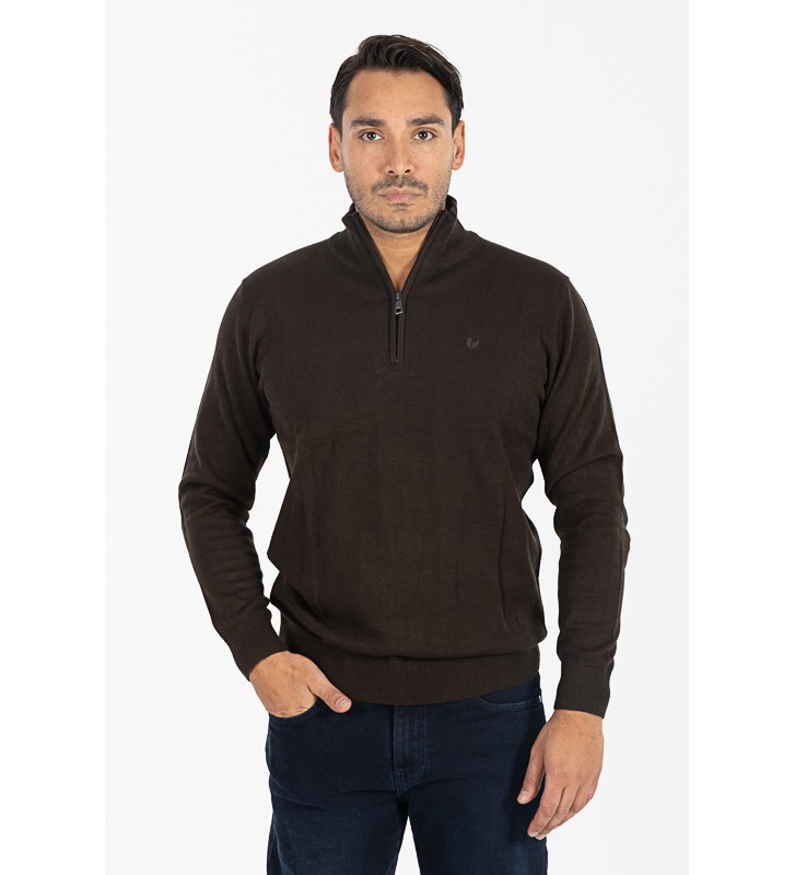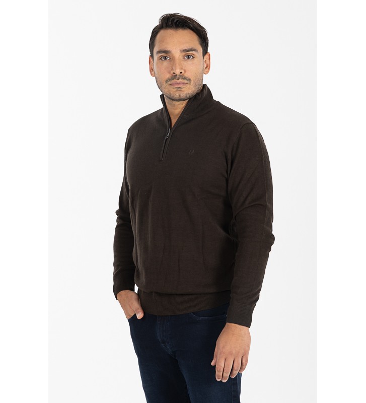 PRE END KNIT ZIP MALCOM 21-100527 ULTRA DARK BROWN MIX