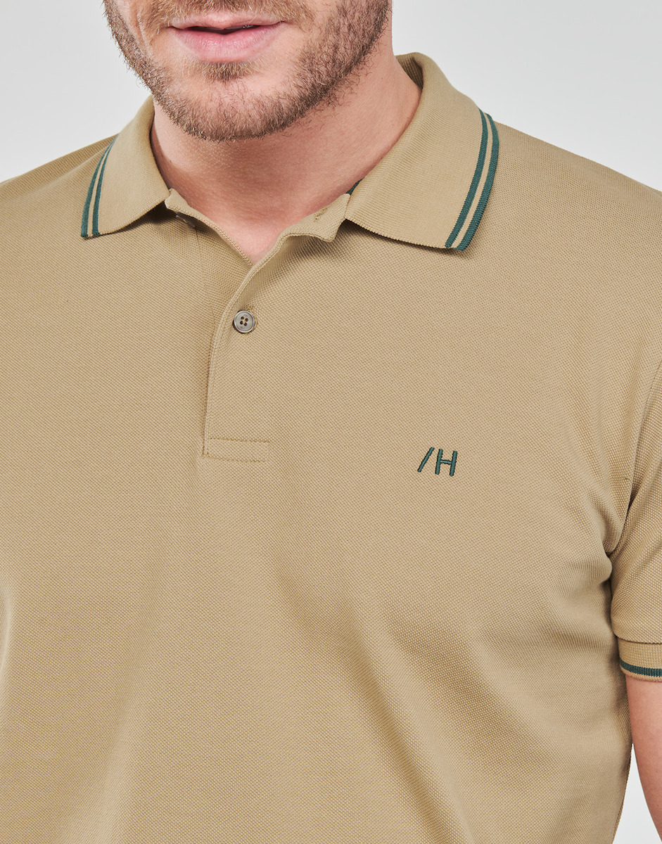 Μπλούζα κοντομάνικη , τύπου πόλο , σε μπεζ χρώμα με πράσινες λεπτομέρειες στο κέντημα , στον γιακά και τα μανίκια . Άνετο ,δροσερό φτιαγμένο από οργανικό βαμβάκι. Έχει εξαιρετική εφαρμογή και υποστηρίζει πολλά διαφορετικά στυλ.