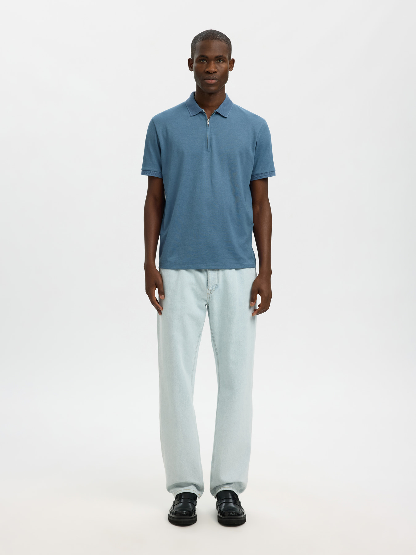 SELECTED POLO ZIP FAVE BLUE MIRAGE